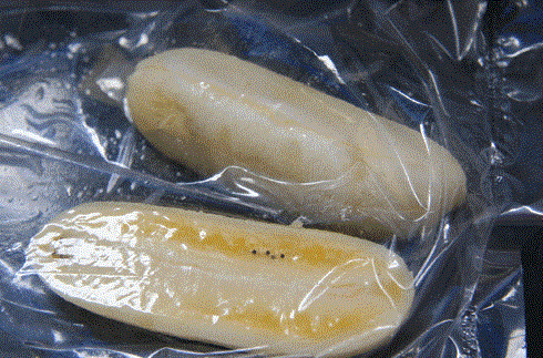 Step 2: Peel off cover of bananas, cut in half, press gently. Now, you finished basic steps to prepare one of Easy Vietnamese Recipes. Let us fry these cakes now.